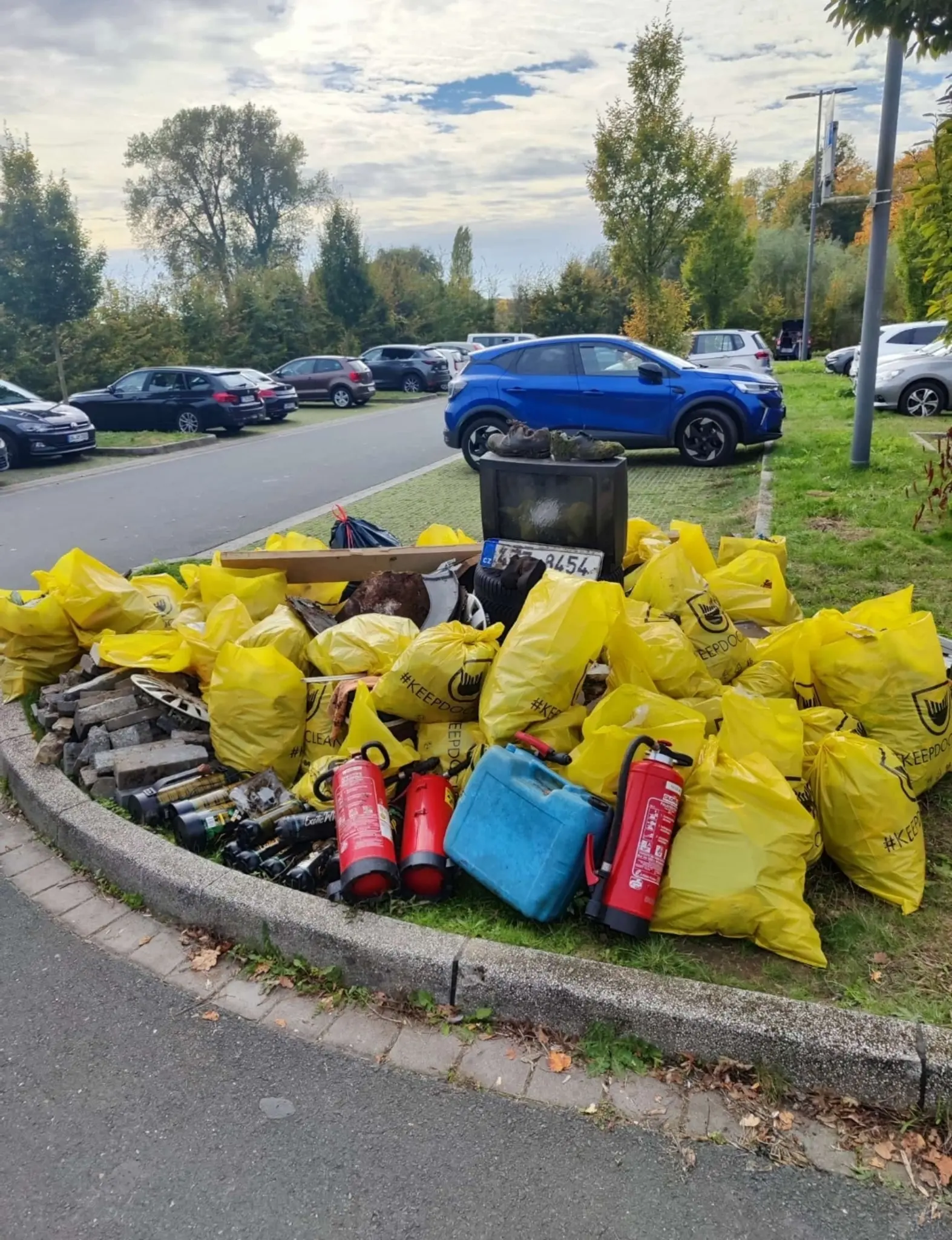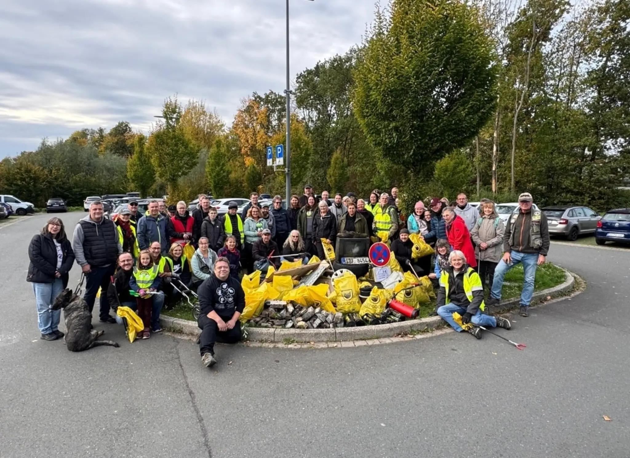 Nach gut zwei Stunden war der Parkplatz kaum wiederzuerkennen: sauber, aufgeräumt und um einige Dutzend prall gefüllte Müllsäcke erleichtert. Beim abschließenden Gruppenfoto blickten alle stolz auf das Ergebnis ihrer Arbeit – und genossen bei bestem Herbstwetter das gesellige Miteinander.